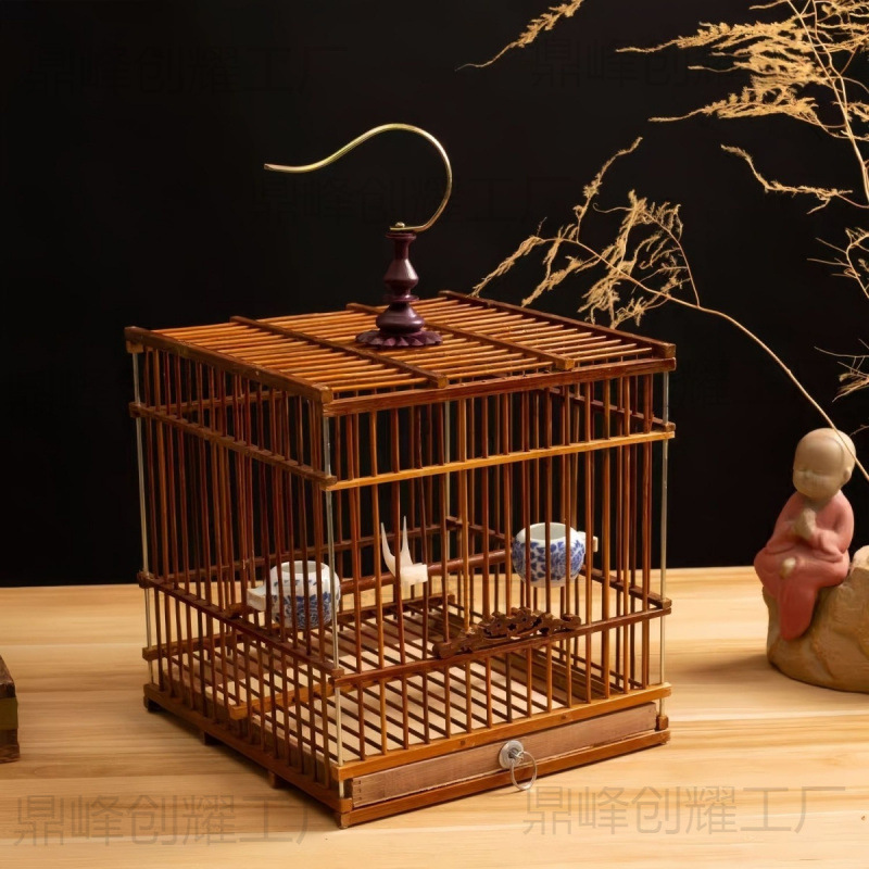 工場直販竹製小四角ケージ刺繍目長方形鳥かごベイジアオイケージ