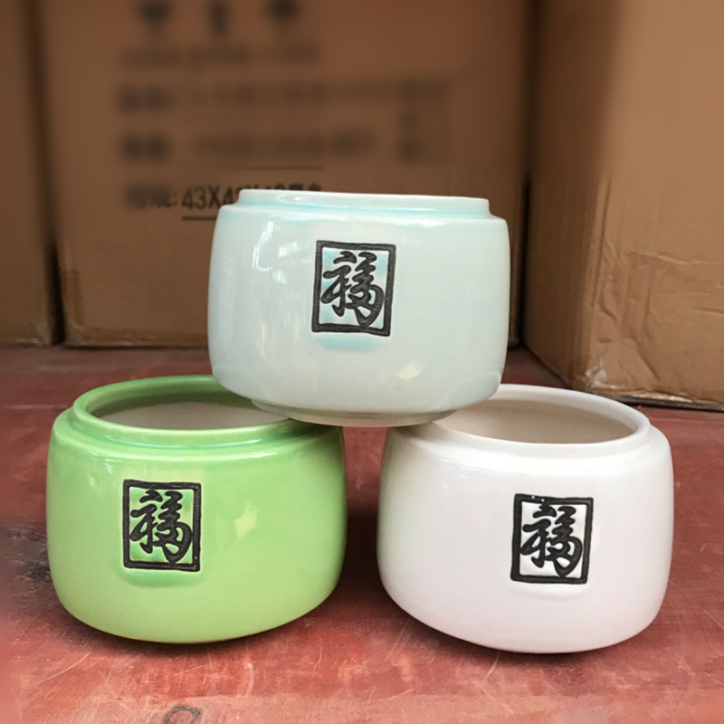 祝福の言葉小さな盆栽植木鉢デスクトップセラミックハイエンドマット北欧シンプルな中国風屋内シダ鉢植え蘭ポット