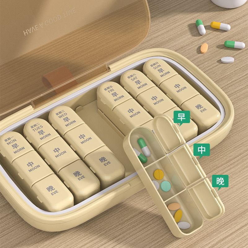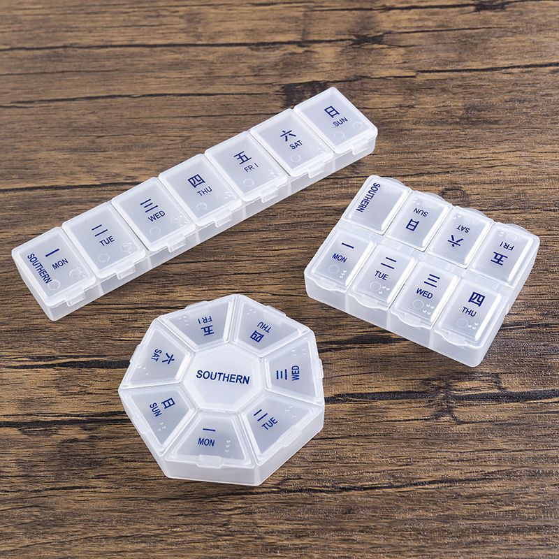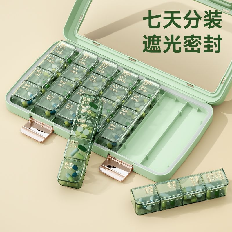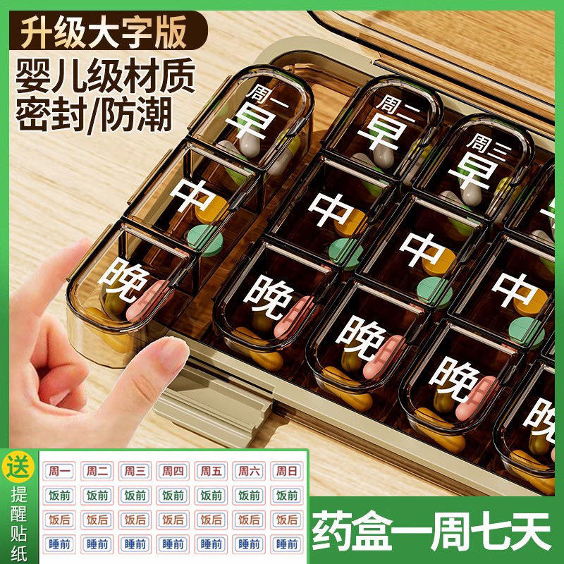 週7日携帯薬箱大容量中英語7格分薬箱薬品収納箱食品級