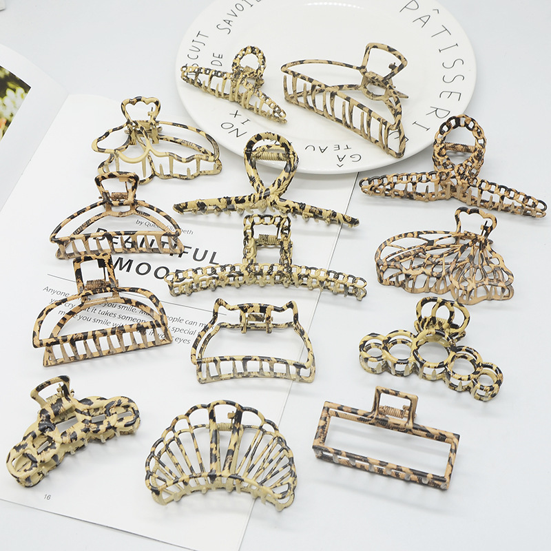 新型韓国金属豹紋ヘアピン優雅気質サメクリップ後頭部ヘアグリップ復古シンプル大サイズクリップ