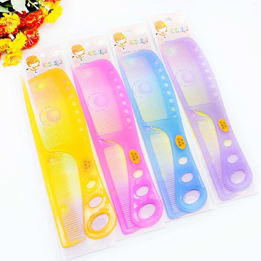ゼリー色のカラーの髪の櫛の小さいサイズのプラスチックの旅行の櫛の髪の巻き髪の携帯の櫛は穴を掛けます。