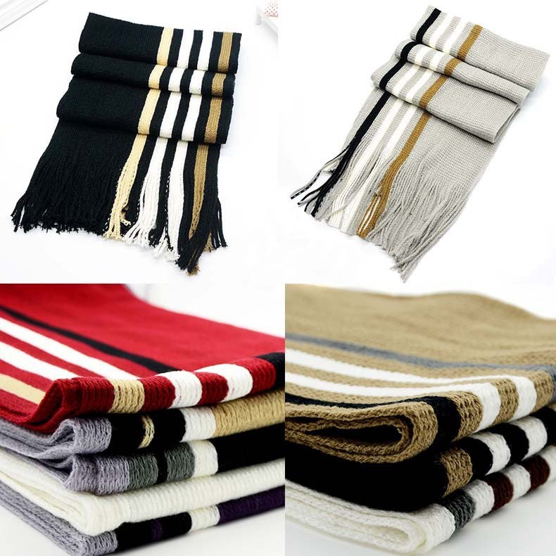 韓国東大門メリヤス縞スカーフ格子秋冬保温ウール糸スカーフ流蘇insマフラー男