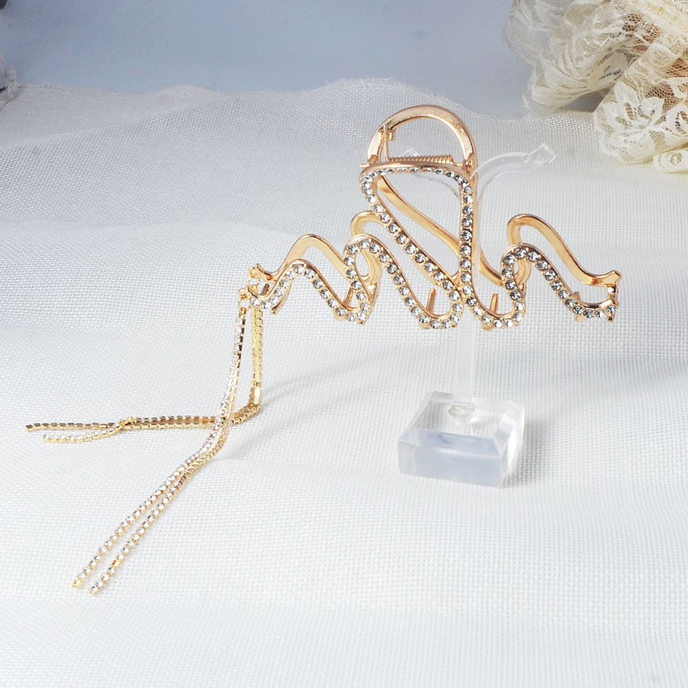 高級感のあるロングタイプのフリンジチェーンは、ドリルの後頭部をつかんで、サメのクリップの大きいサイズの金属クリップの髪飾りの女性です。