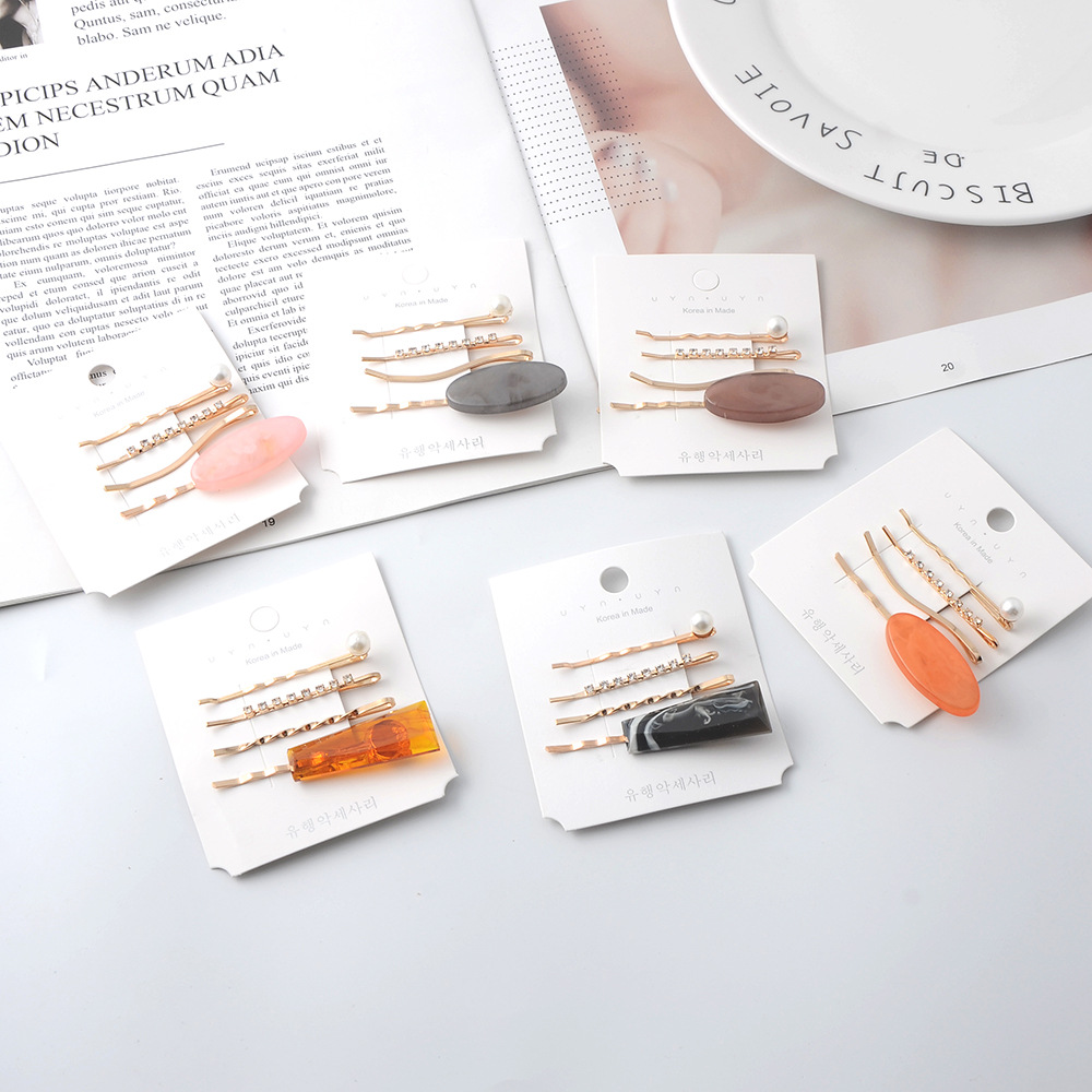 韓国insネットレッド樹脂ヘアピンセットレトロ前髪クリップ一字クリップセット金属クリップアクセサリー