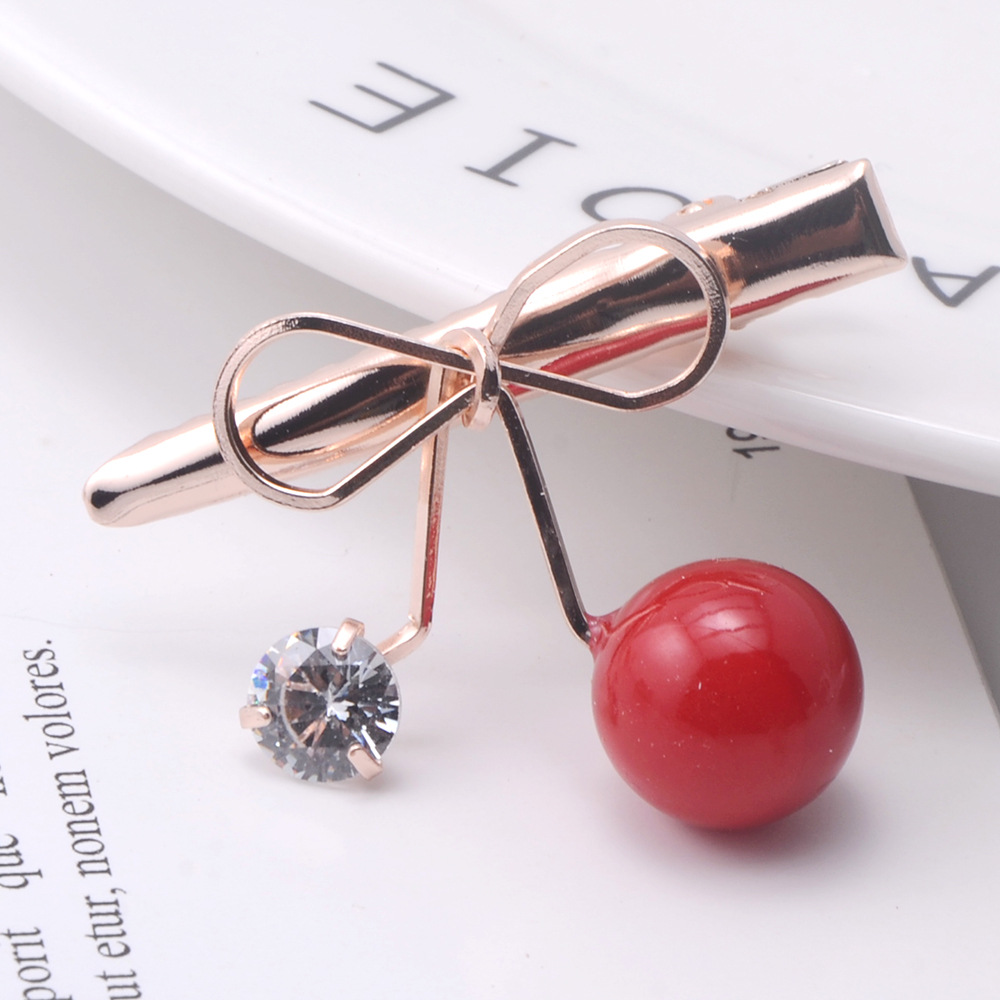 蝶ネクタイにはさくらんぼの赤い白いアヒルの口が飾られています。