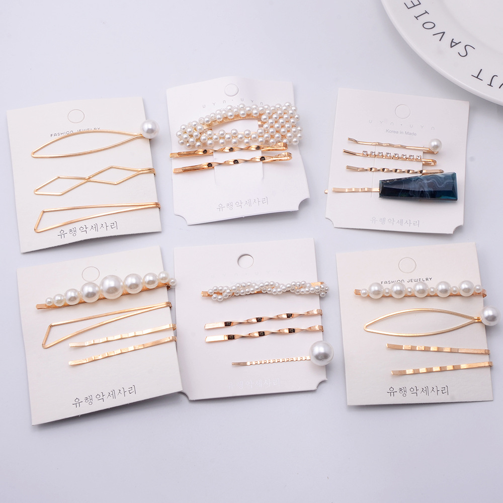 韓国の真珠のヘアピンの組み合わせのセットは極めて簡単で甘い合金の前髪の縁を挟んで1字を挟みます。