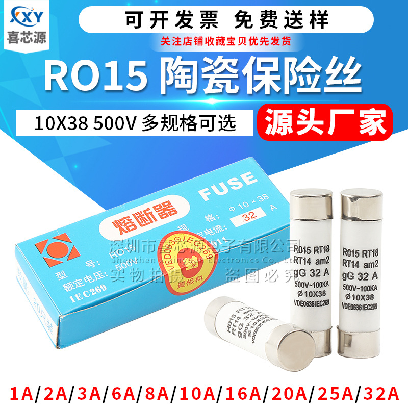 10*38セラミックヒューズ1A-2A/4A/16A/25A/32A 500V溶断R015/rt 18/rt 14