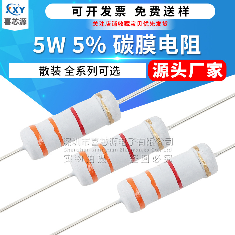 5w直挿し炭素膜抵抗5% 10r 47R 470r1 K 2.2K 5.1K 150K 470K全シリーズ