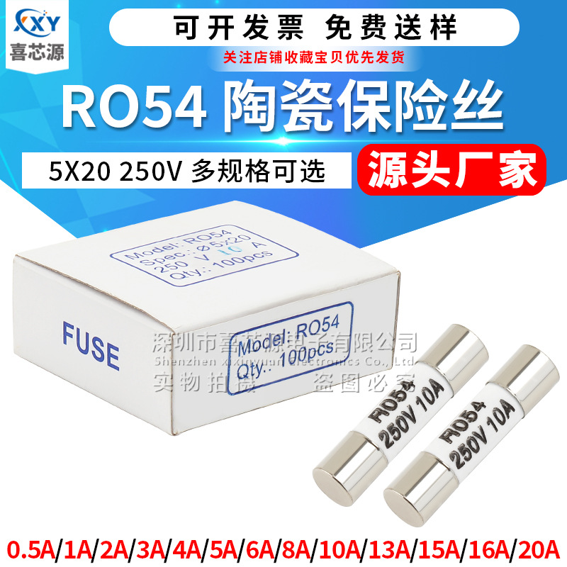 R054 ro54セラミックヒューズ250v 0.5a/1/3/6/10 ~ 25a 5 * 20mm溶融コアヒューズ