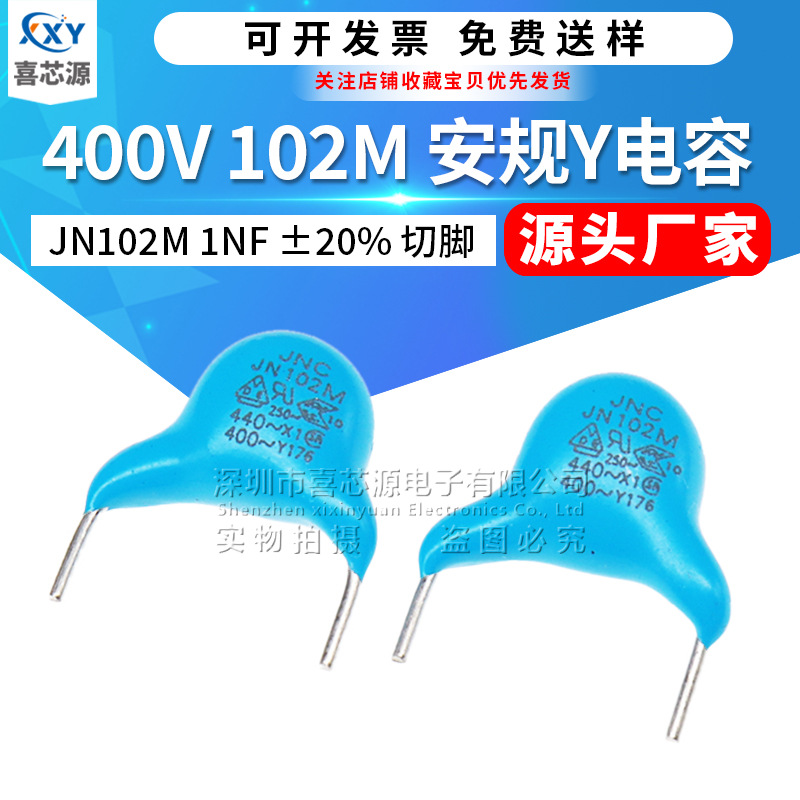 メーカー直供400v102m安規y1コンデンサ1000pf1nf足距離10mm短足セラミックコンデンサ