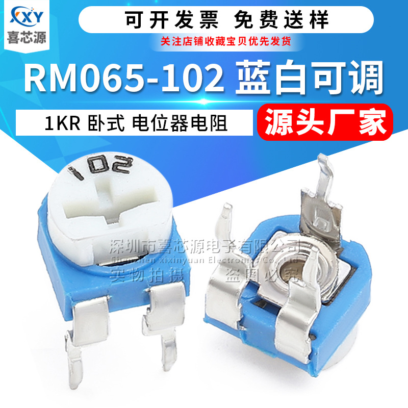 WH06-2/RM065-102青白調整抵抗1kω 1千オーム蘭白横型微調整ポテンショメータ