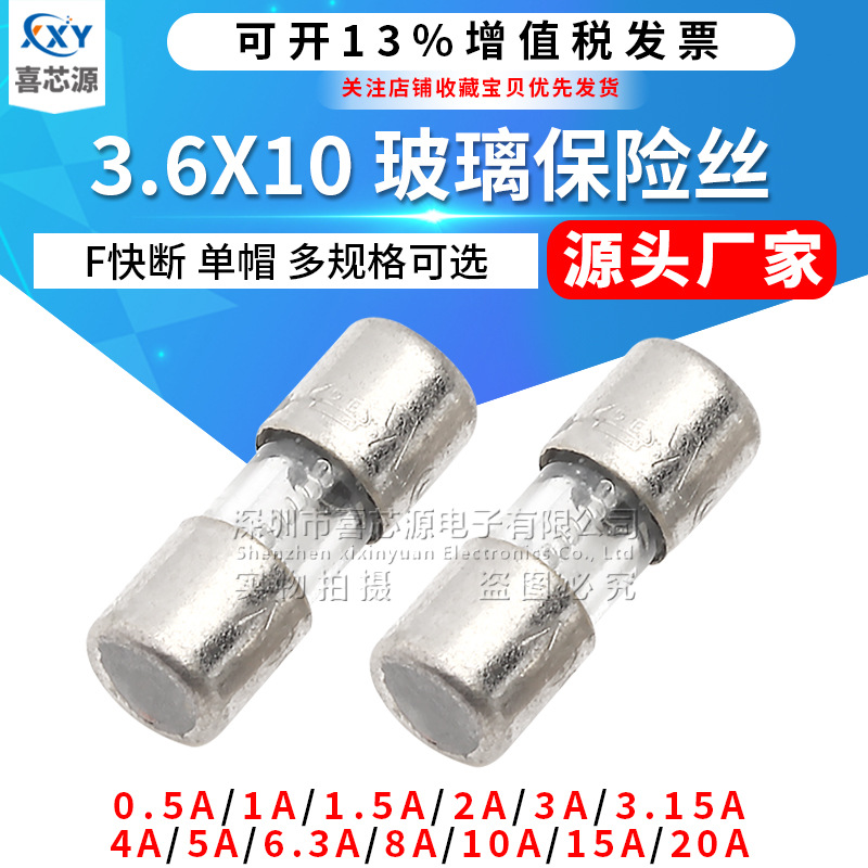 メーカー直供3.6*10mmガラスヒューズ250v 1a/2a/3a/4a/5aピンレス保険管