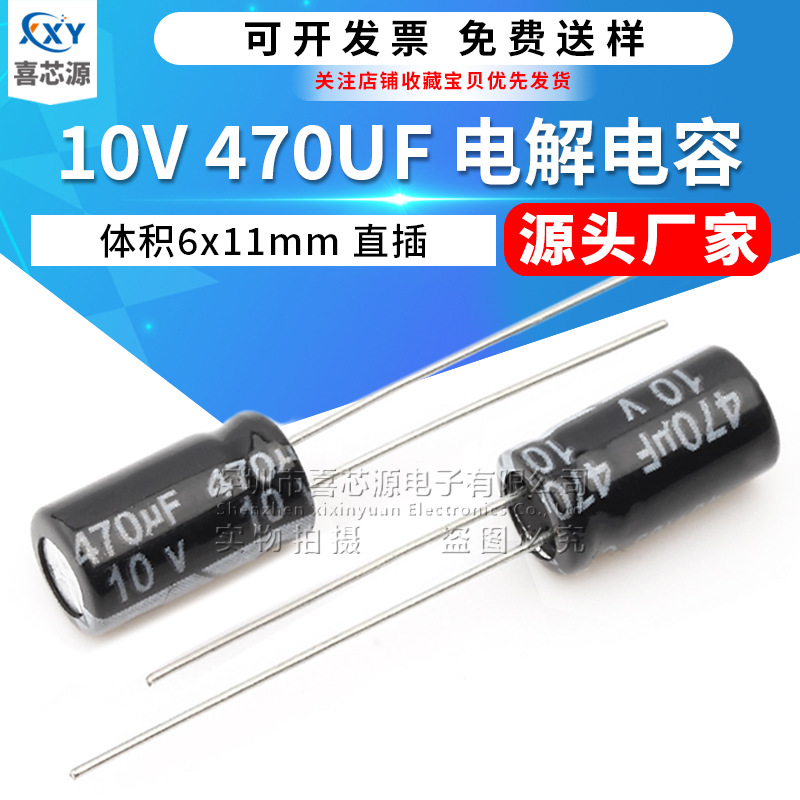 メーカー直供10v470uf直挿しアルミ電解コンデンサ体積6x11mm高周波低抵抗スイッチング電源