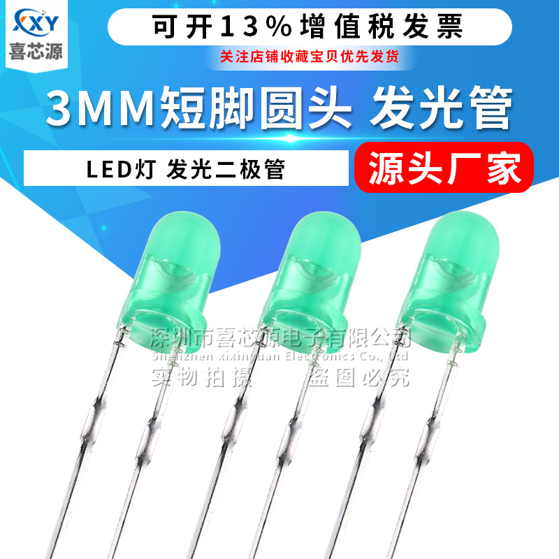 メーカー直供3mm緑発緑色ledランプf3ハイライト発光ダイオード円頭電源ランプ短足