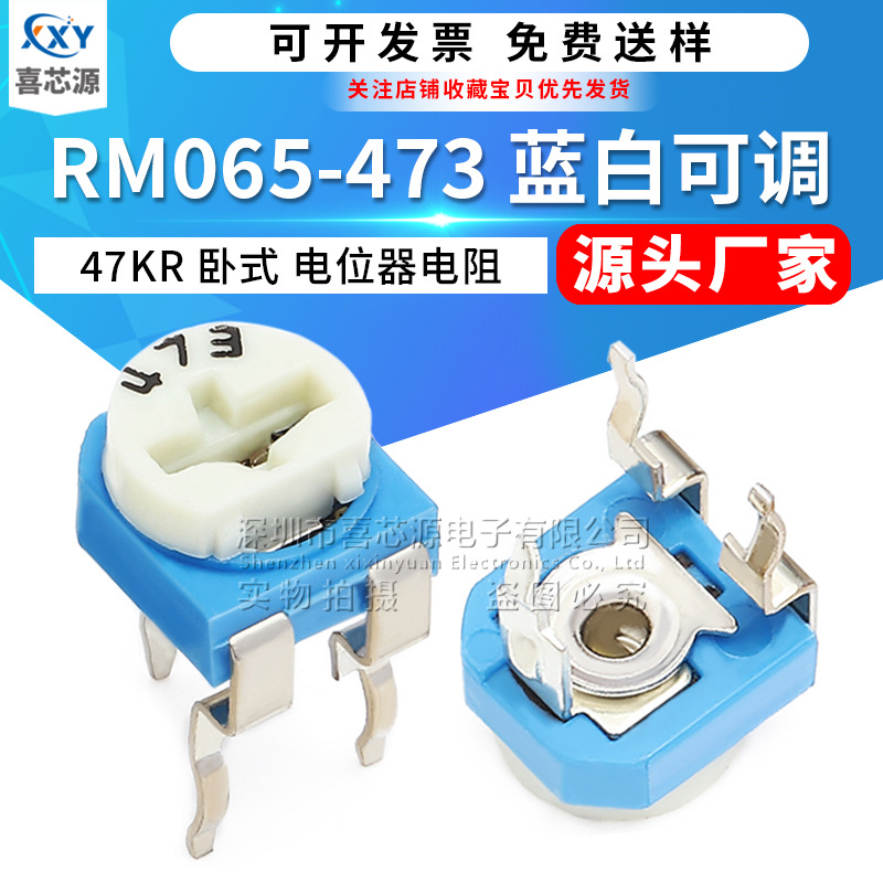メーカー直供RM065-V1青白調整抵抗47k 473 5% 蘭白微調整横型ポテンショメータ