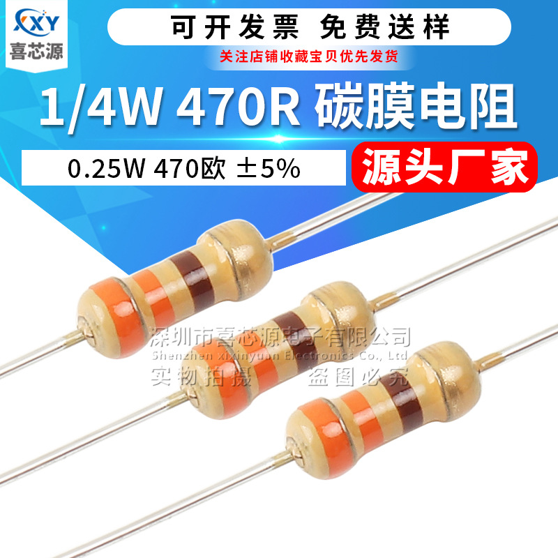 メーカー直供1/4w炭素膜抵抗470r 470欧5% 0.25w jレンジ直挿し円筒形五色環