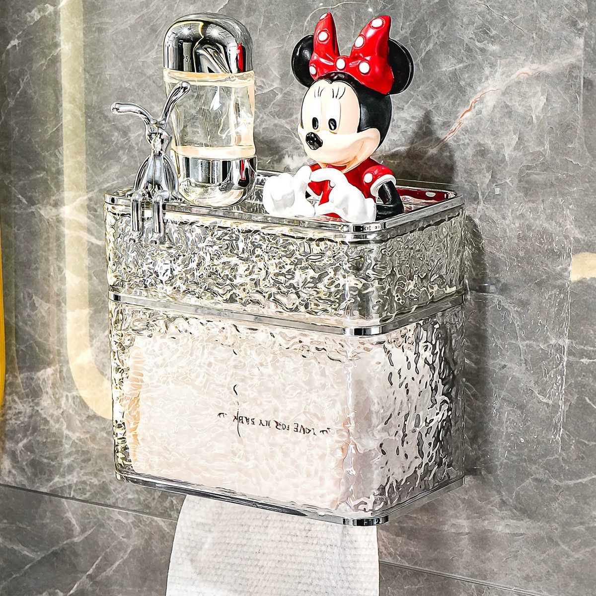 トイレットペーパーボックス、トイレットペーパーティッシュボックス、トイレットペーパーボックス、防水壁掛けパンチフリートイレットペーパーロール収納ラック、透明モデル