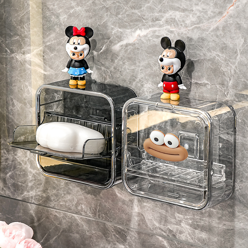 ふたをひっくり返して石鹸の箱の2024の新型の壁掛け式の穴を開けないで水の石鹸の箱のかわいい漫画を切って石鹸の棚を置きます。