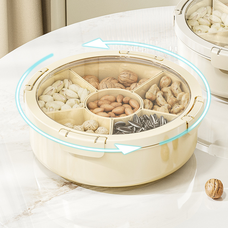 回転ドライフルーツプレート密封コンパートメント 2025 新しいリビングルームホームライト高級ハイエンド新年スナックメロンシードナッツプレート