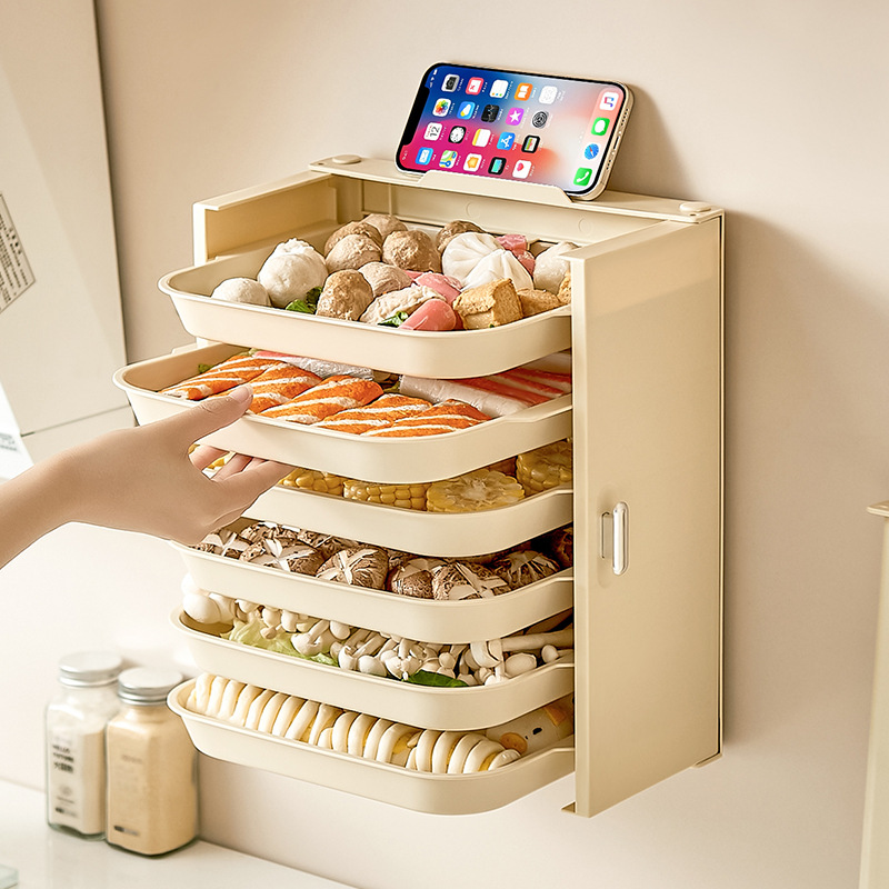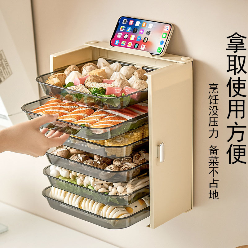 台所に料理を用意する家庭用多層鍋麻辣热おかず棚透明折り畳み式壁掛け収納棚