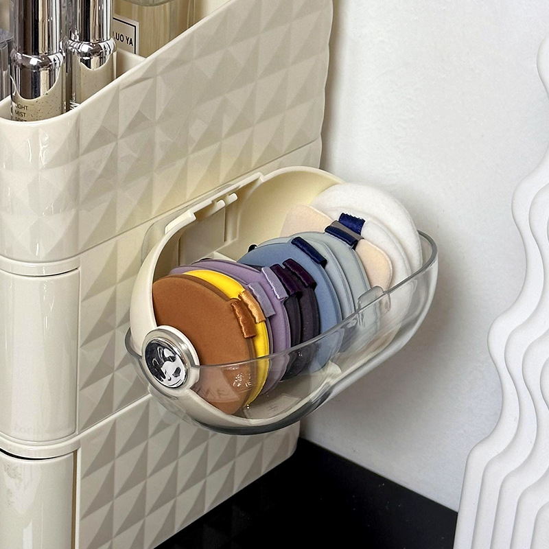 パフ収納ボックス蓋付き防塵回転美化粧卵通気収納棚壁掛けエアクッションアクセサリー水切り棚