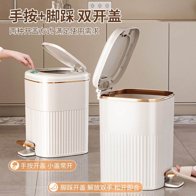 ゴミ箱の家庭用トイレに足を踏み入れることができます。