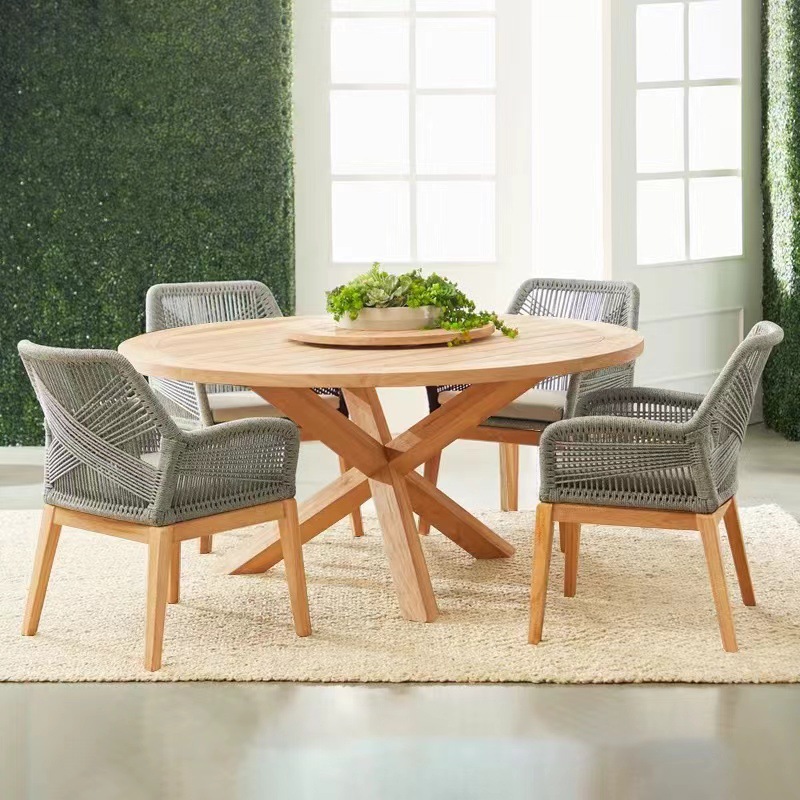 北欧屋外テーブルと椅子の組み合わせレジャー露店庭藤編みテーブルと椅子屋外チーク防水日焼け止めテーブルと椅子