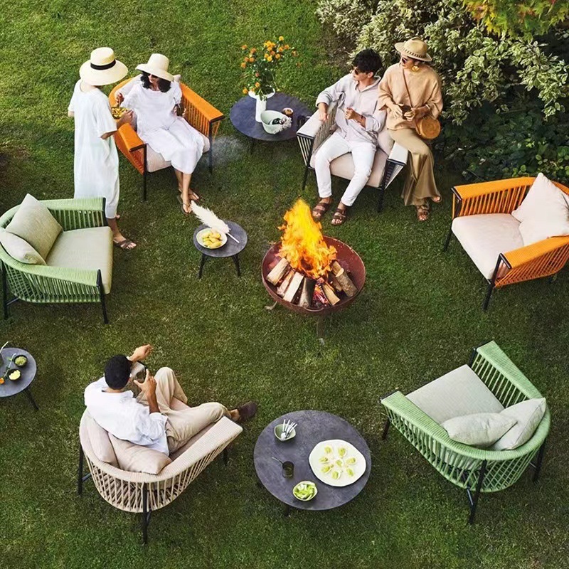 北欧屋外ソファ庭園ベランダ別荘テラス柚木藤編ソファ防水日焼け止めレジャー民宿家具