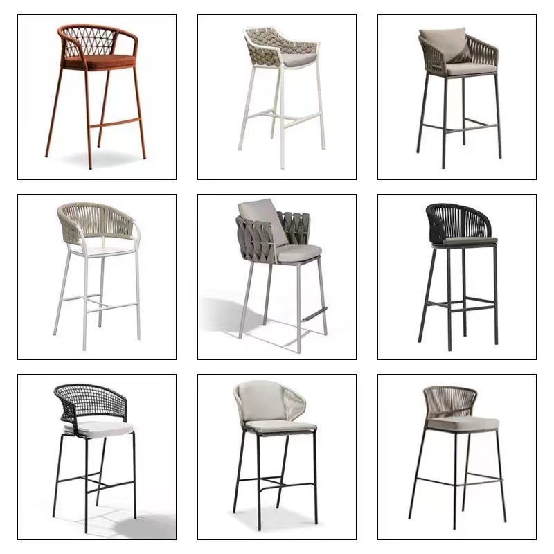 屋外藤編みバーバー高足バーベンチ屋外露店庭カフェ露店ロープ編みバー椅子防水