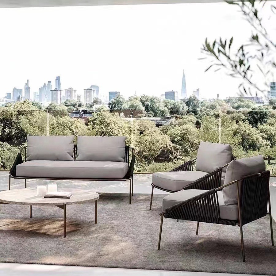 屋外ソファ組み合わせ庭バルコニーテラス籐編みソファカジュアル別荘デザイナークリエイティブ籐椅子家具