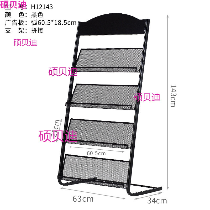 チラシの折りたたみ棚の床にあるパンフレットの展示棚の雑誌棚のはがき棚の本棚の資料棚