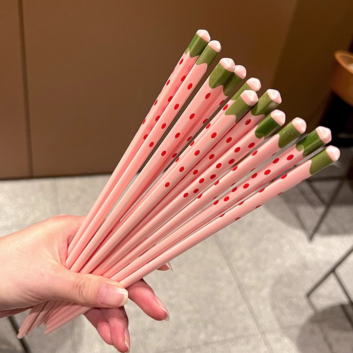 セラミック箸10足入家庭用可爱いいちごインスタピンク少女高颜値食器高温高级感あり