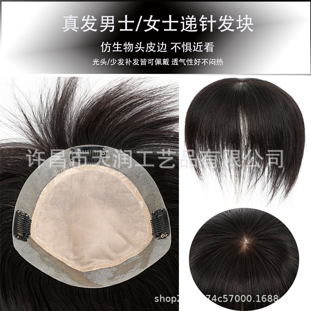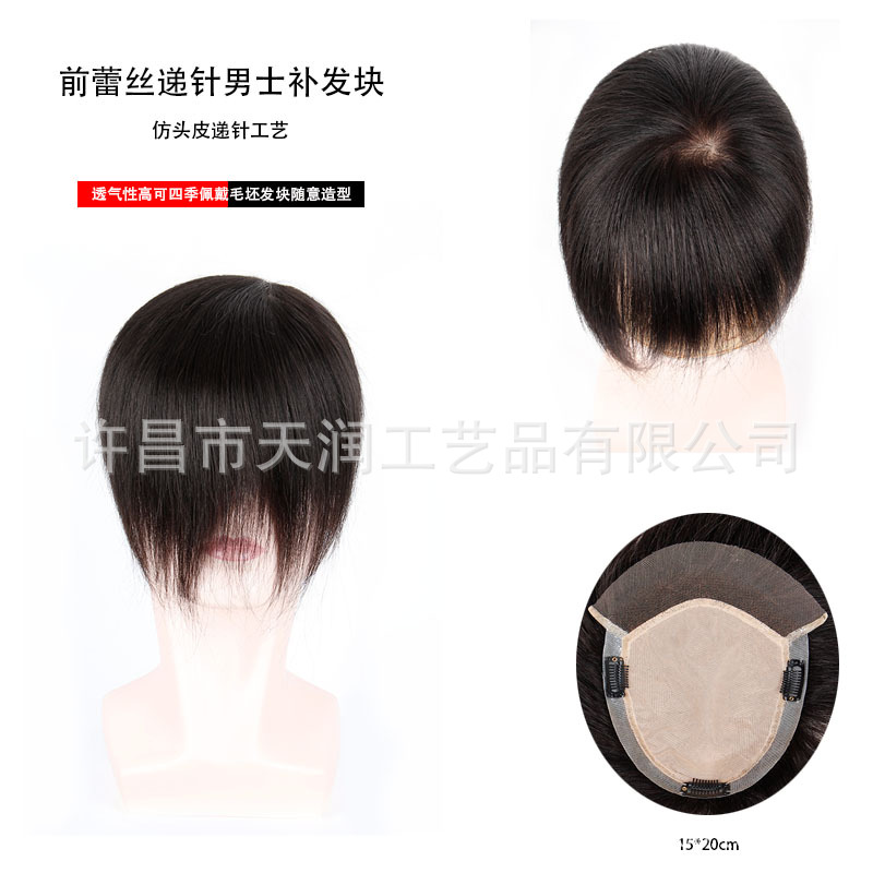 全手織り男性の頭の上に髪を補充するシート15*16全真髪の薄い通気性は男性の針を染めて髪を補充することができる