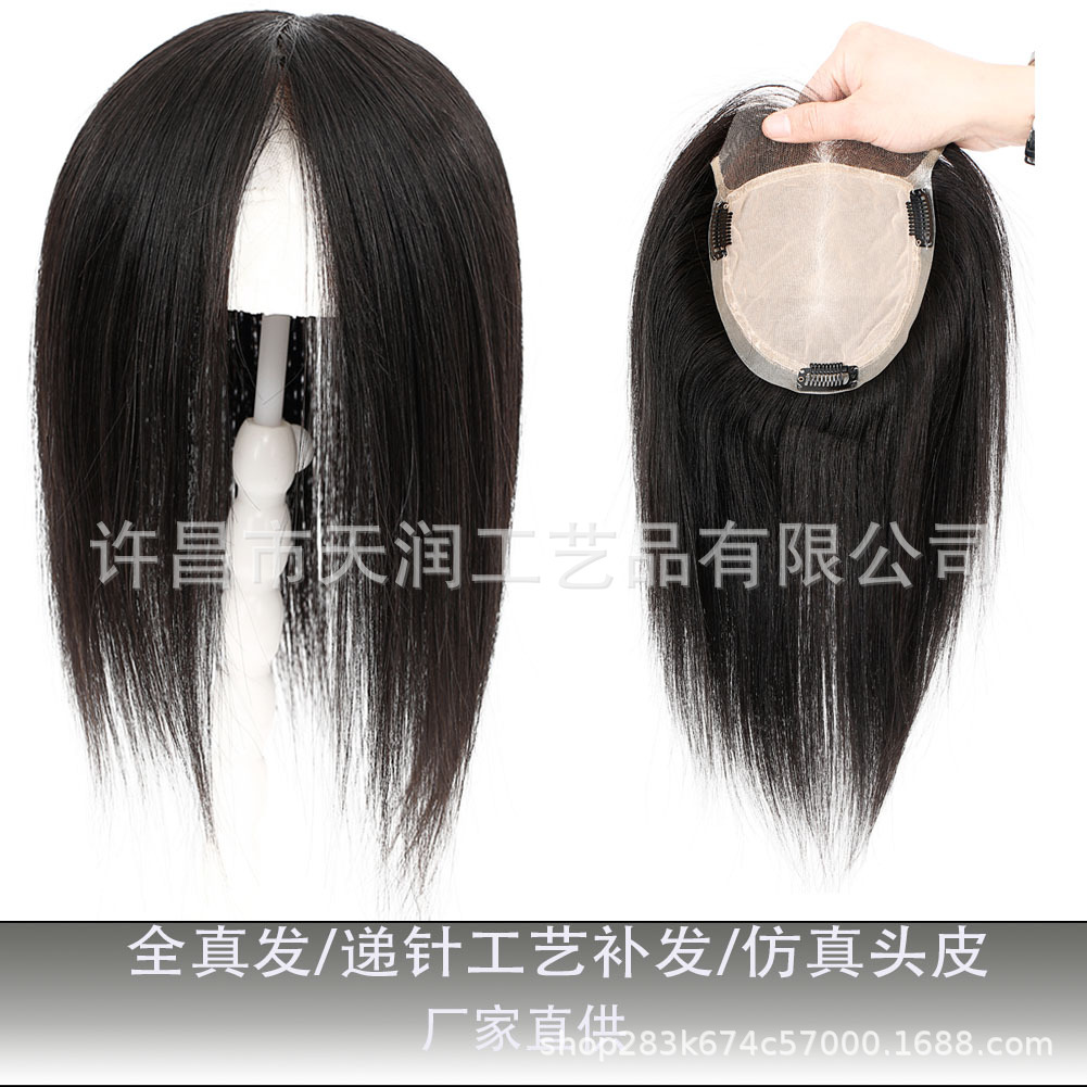 全手織り針女性の頭の上で髪を補充する12*13全真髪の薄い通気性は白髪を遮って髪をパーマで染めます。
