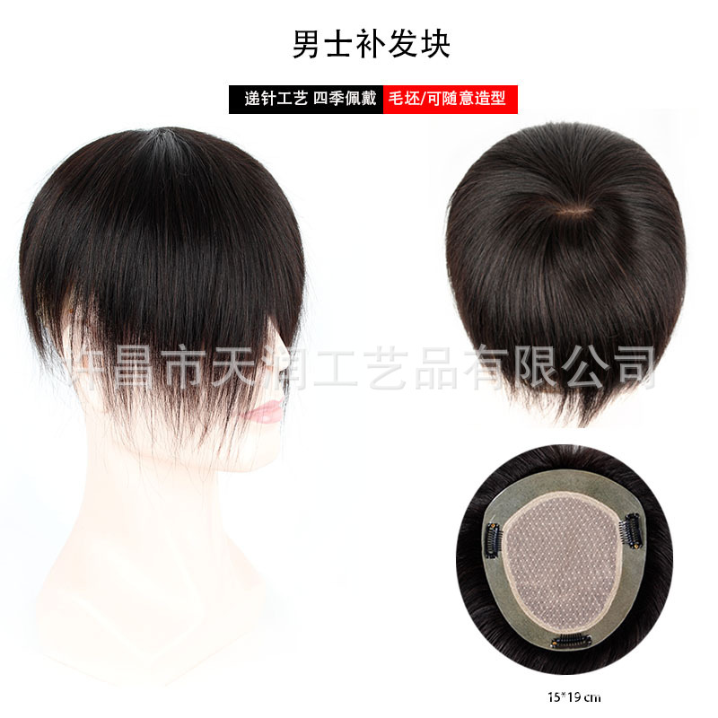 全手織り男性の頭の上に髪を補充するシート15*19全本の髪は薄くて通気性があり、アイロンをかけて髪を補充することができる