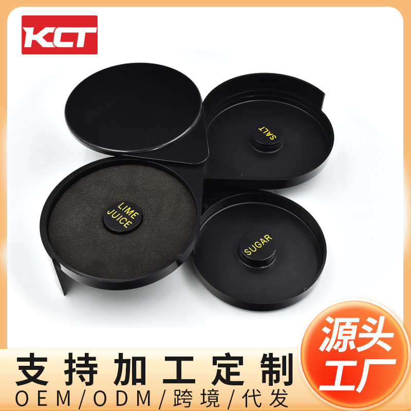 カクテルの塩の縁の箱のバーテンダーの用具の黒色の3層の杯の縁の箱の酒の専用の塩の縁の箱を供給します。