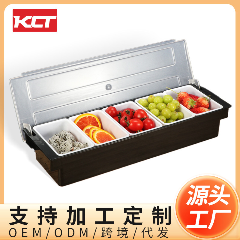 メーカー直供バーに蓋付きの果物かごプラスチック多規格果物箱4格調味料箱調味料箱