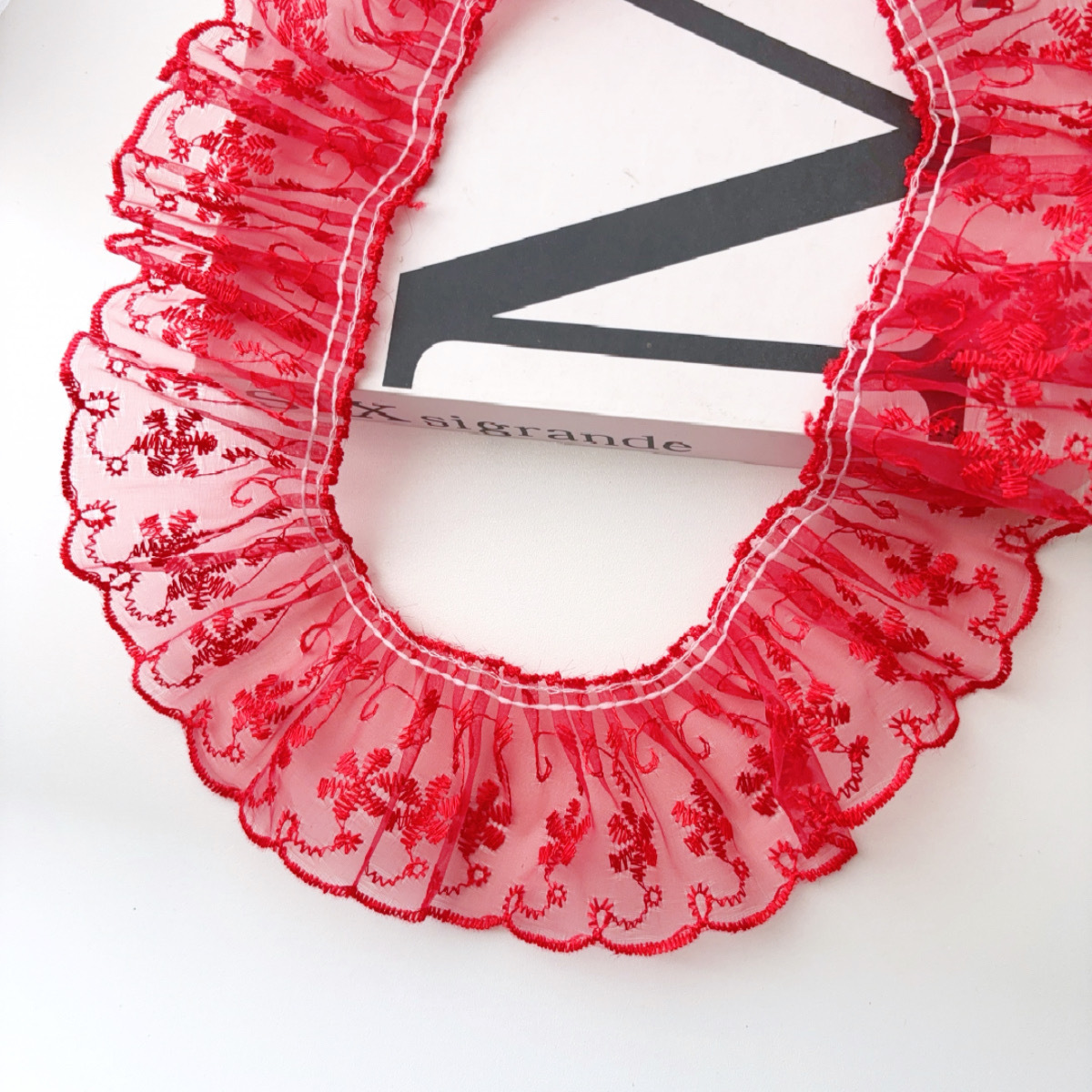4cmレースフリルプリーツメッシュ刺繍スカートベビードール服ウェディングドレスアクセサリー雪紗卸売手作りDIY