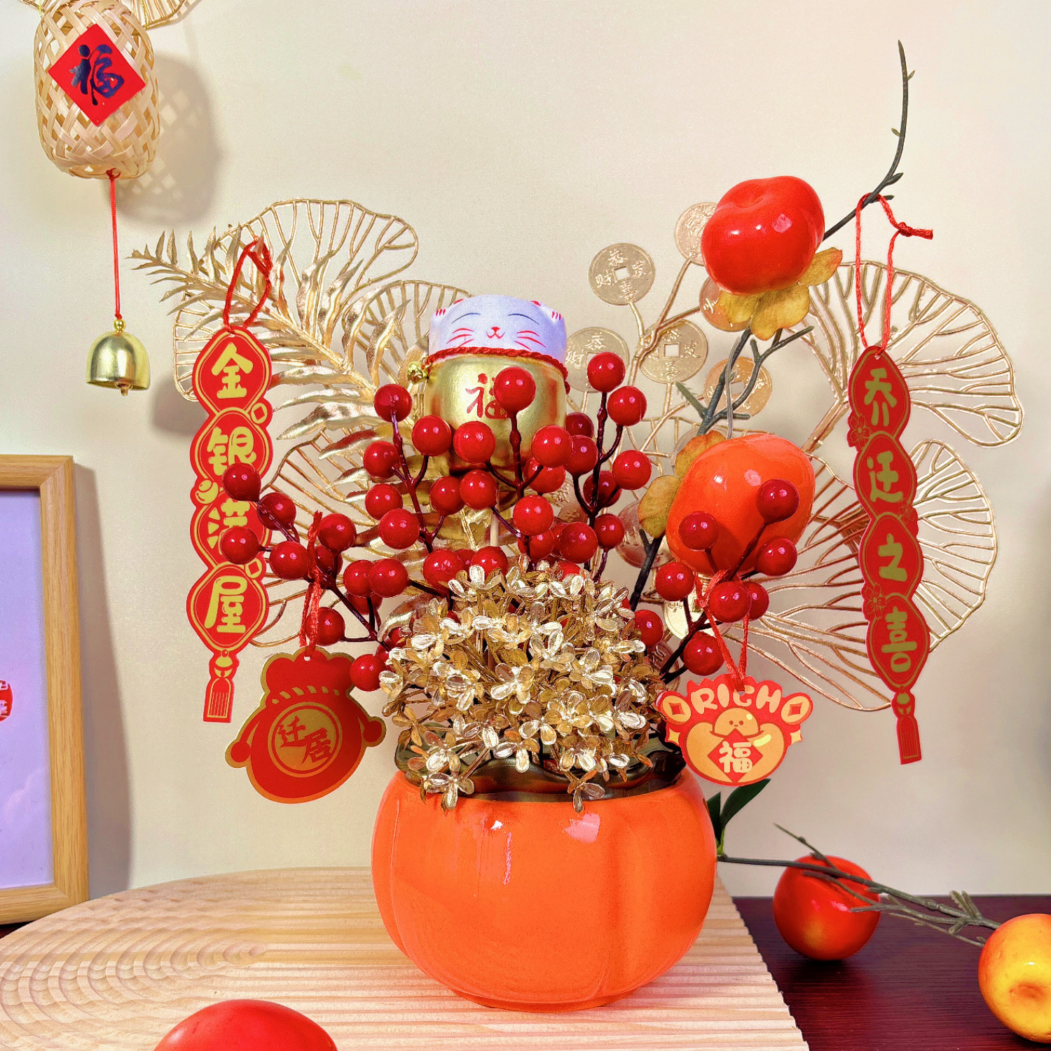 お祝いの福の果物飾り、模造紅柿、福桶、蛇年、結婚式、リビングルームの装飾、ギフト、結婚式用品