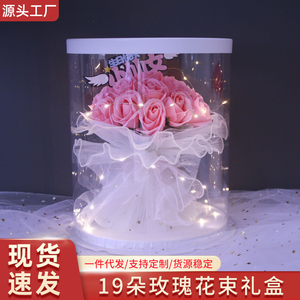 クロスボーダー小香風抱っこ桶花ロリータ欧根紗縁永生花ロマンチックバレンタインデープレゼント石鹸花