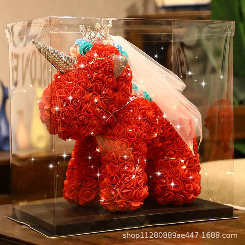 永生花ユニコーンバラの熊ギフトボックスは彼女の妻の親友バレンタインデーの子供の日の誕生日プレゼントをセットします。