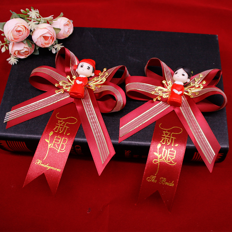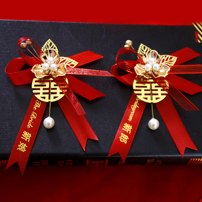 ウェディング用品結婚胸花ワインレッド結婚式バラ胸花創意造花結婚式結婚祝い胸花卸売り