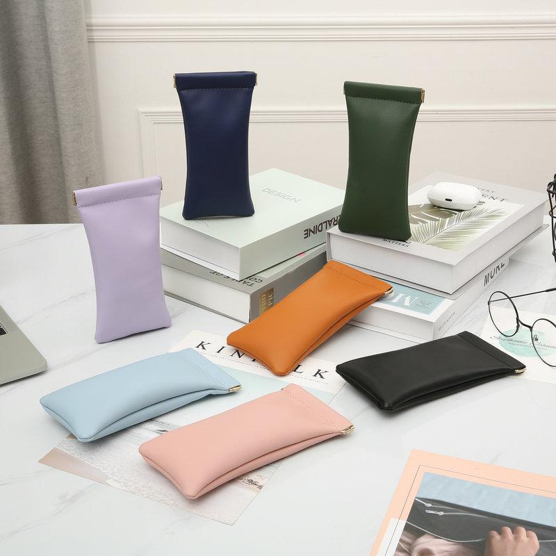 弾丸型メガネバッグ、サングラス収納バッグ、自動開閉式携帯メガネバッグ、PU素材、高級感