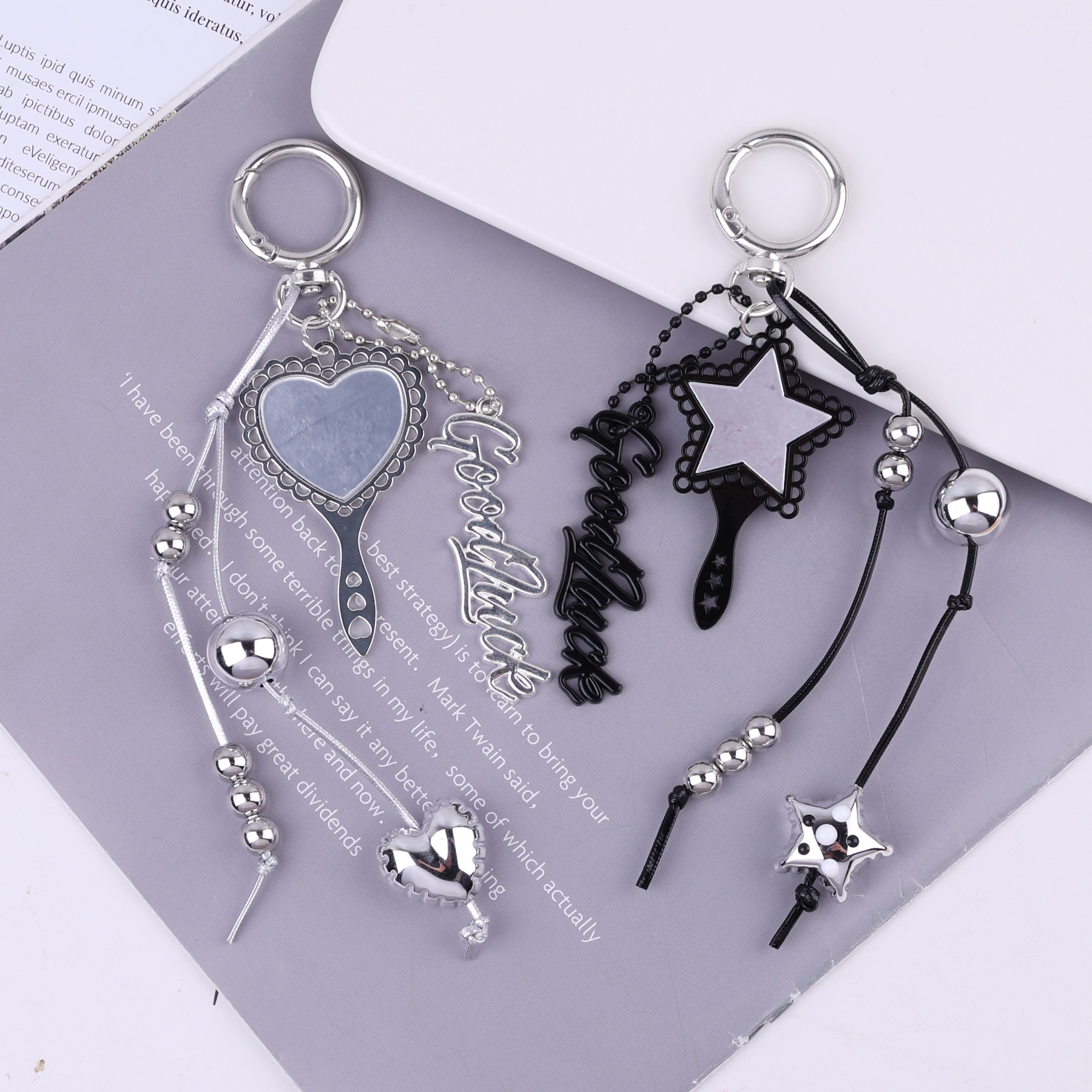 クリエイティブラッキーキーホルダーラブスターマジックミラーデザインレターペンダントメタルビーズタッセルバッグペンダント