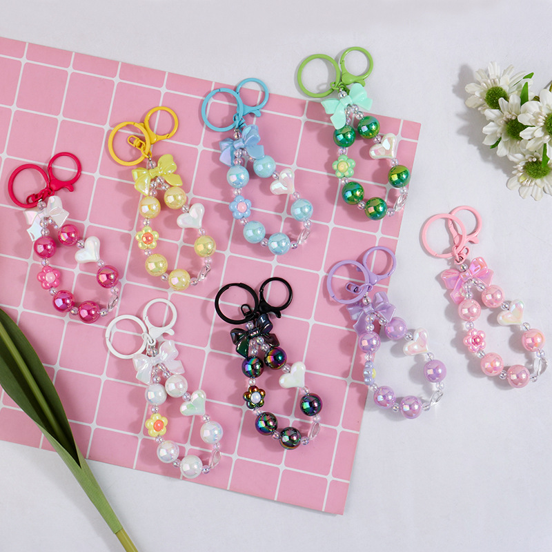 創意樹脂のキャンディー色のリボンの愛の花の数珠のキーホルダーの装飾のペンダントの車の鍵の装飾