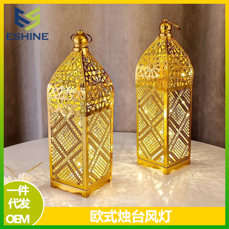 クロスボーダー鉄製金メッキ風灯透かし彫りモロッコ提灯家庭装飾置物工芸品燭台雰囲気道具