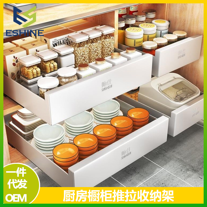 キャビネット引き出しキッチン引き出し式キャビネット収納ケース穴なし単層スライドレール調味料ラック食器棚