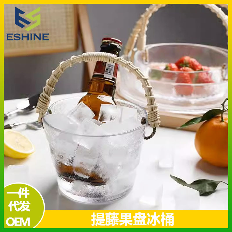 竹の藤のガラスの氷の桶の果物のかごの軽い贅沢な果物の皿の家庭の客間の間食のお菓子の皿の商用のアイデアの料理の皿
