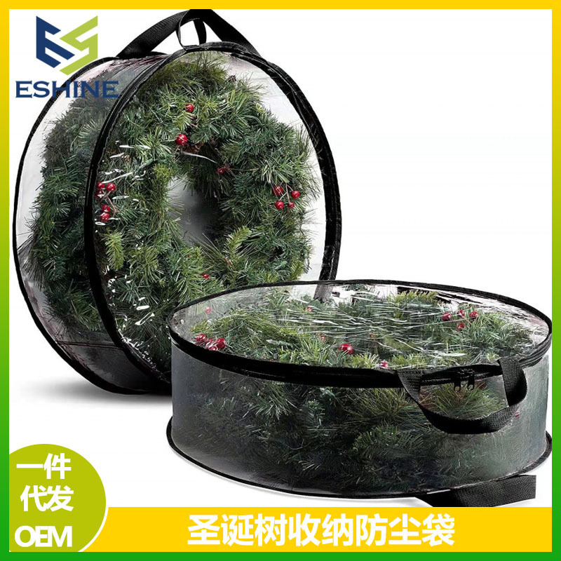 クロスボーダー円形透明クリスマスツリー袋クリスマスリース収納袋保存クリスマスサークル収納袋防水防塵袋