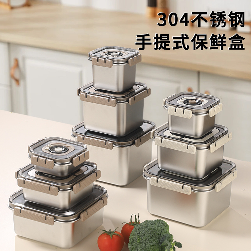 手持ち304ステンレス製タッパー蓋付き密封弁当箱大容量角型サラダ弁当箱弁当箱
